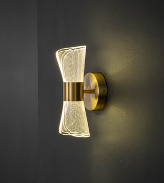The Sora Acrylic LED Wall Light Gold combines graceful form and ambient glow in a compact, sculptural silhouette. Featuring a flared hourglass acrylic body with intricate textures and a polished gold center band, this wall light adds warmth and elegance to any contemporary space. Key Features: Elegant hourglass-shaped acrylic body with textured detailing Polished gold-finished center accent for a luxurious touch Integrated in-built LED for energy-efficient, long-lasting light Crafted from high-quality acrylic and durable metal components Ideal for hallways,walls,mirrors, or accent corners.