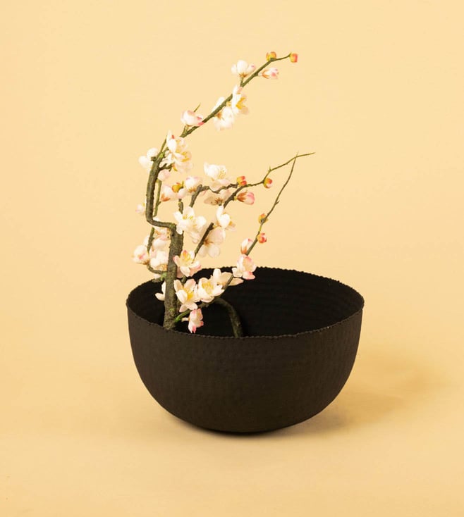 The Whispering Homes Black Metal Vase combines sleek design and modern elegance, making it a perfect accent for any home decor style. Disclaimer: All other items in the image are only for display purposes and will not be a part of the delivery content. Product colour may slightly vary due to photographic lighting sources. Country of Origin - India.