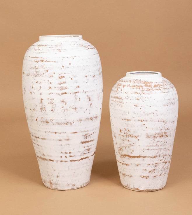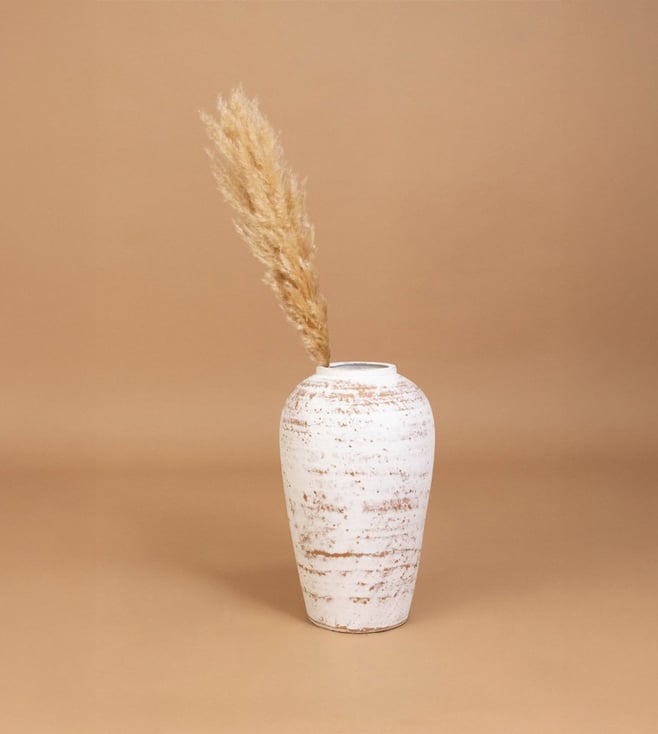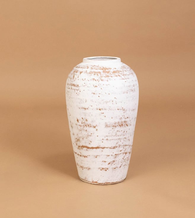 Whispering Homes White,Brown Umberin Terracotta Vase