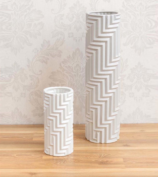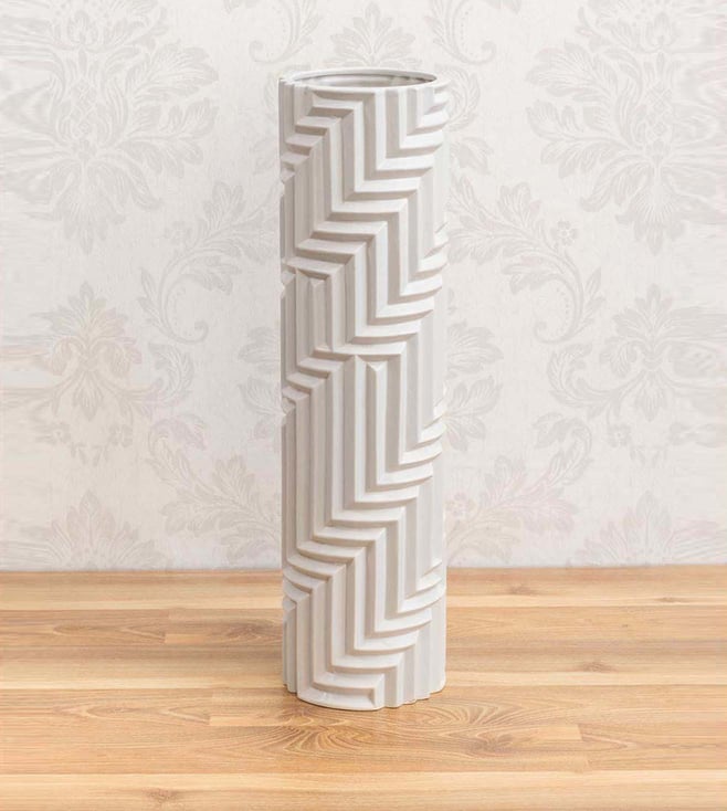 The Baldvin Deco vase is the perfect example that white can be exciting. Ceramic with a sensational fade is the best way to describe this vase. The alternating swirls on its surface create a distinctive texture that cannot be forgotten once touched or even seen. It is best suited as a dynamic piece of decor atop an informal space. Disclaimer: All other items in the image are only for display purposes and will not be a part of the delivery content. Country Of Origin - India.