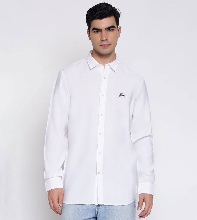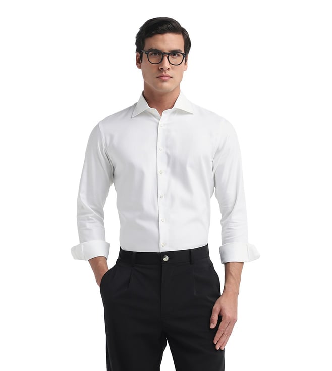 Collins Pure White Solid Spread Collar Regular Fit Basic Shirt