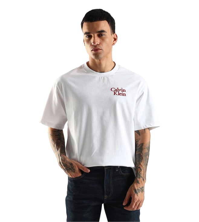 White Cotton Comfort Fit Logo Printed T-Shirt