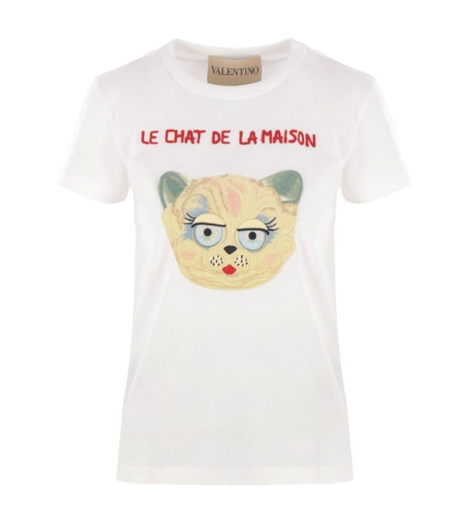 White Cat-Face Patch T-Shirt