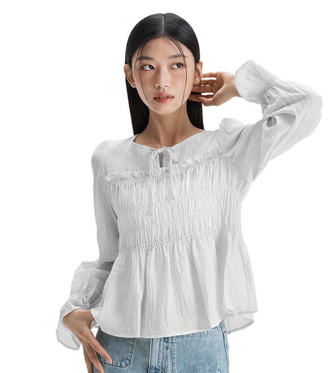White Poplin Drama Sleeve Woven Wrap Detail Regular Fit Blouse