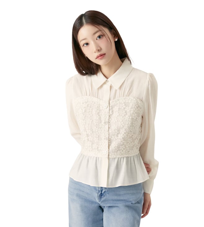 Cream Bustier Matching Embroidered Regular Fit Top