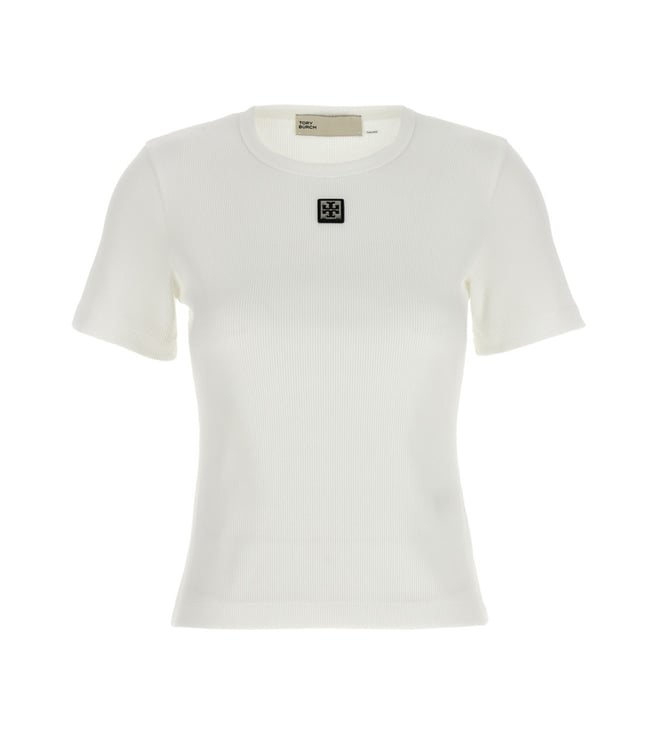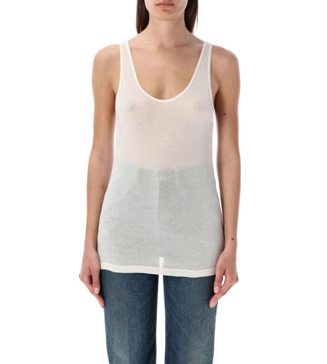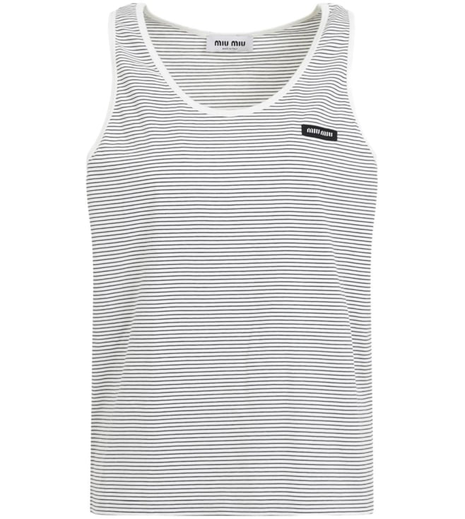 White Logo-Embroide Ribbed Regular Fit Tank Top