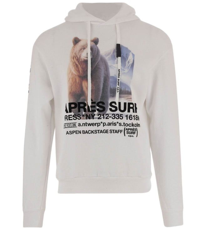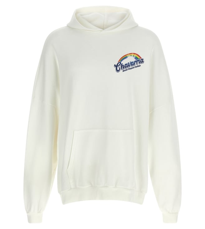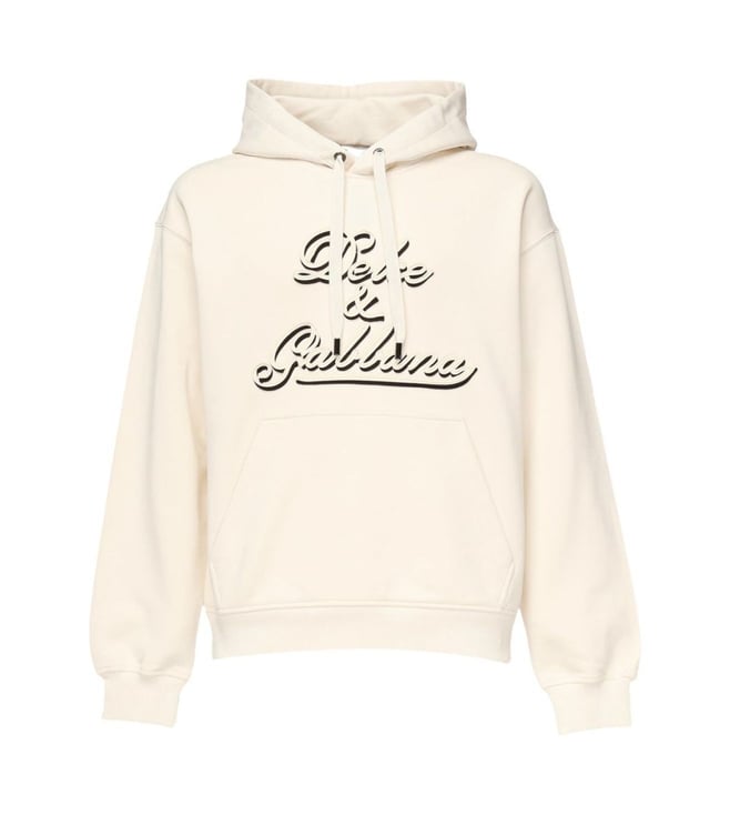 White Cotton Comfort Fit Logo Printed Hooded Sweatshirt