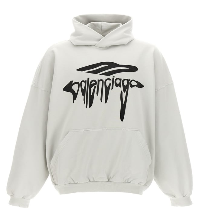 White Printed Logo Regular Fit Hoodie
