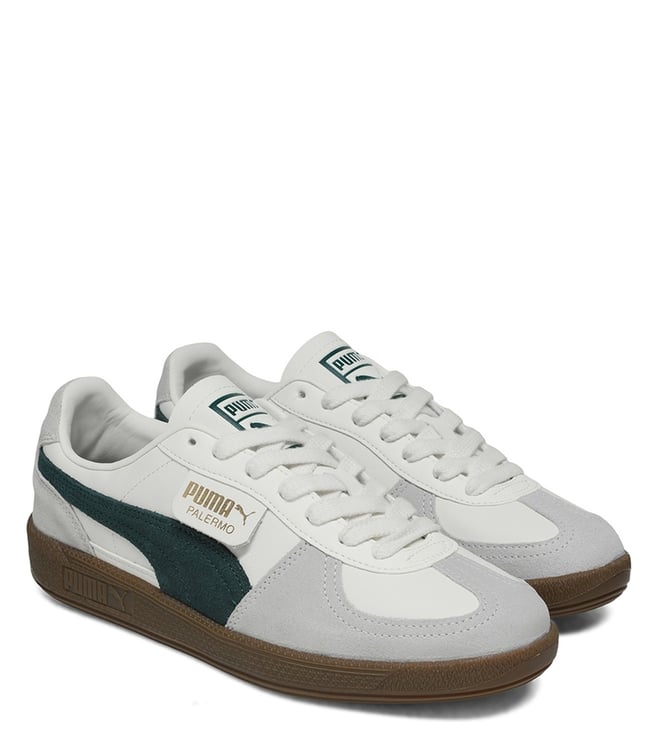 Men's Humus White & Green Logo Mid Top Sneakers