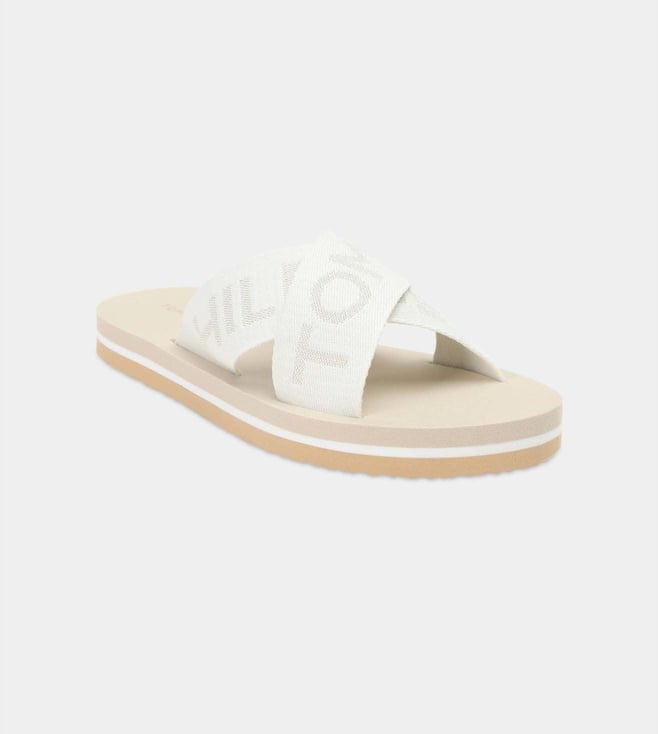 Women's Kezia Off white Logo Ankle Strap Wedges