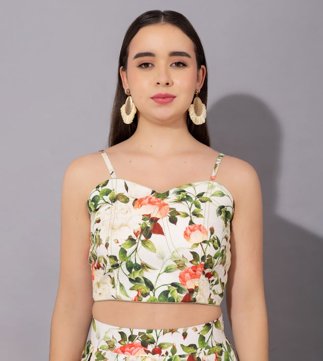 White Silk Regular Fit Embroidered Taffeta Top With Metallic Skirt