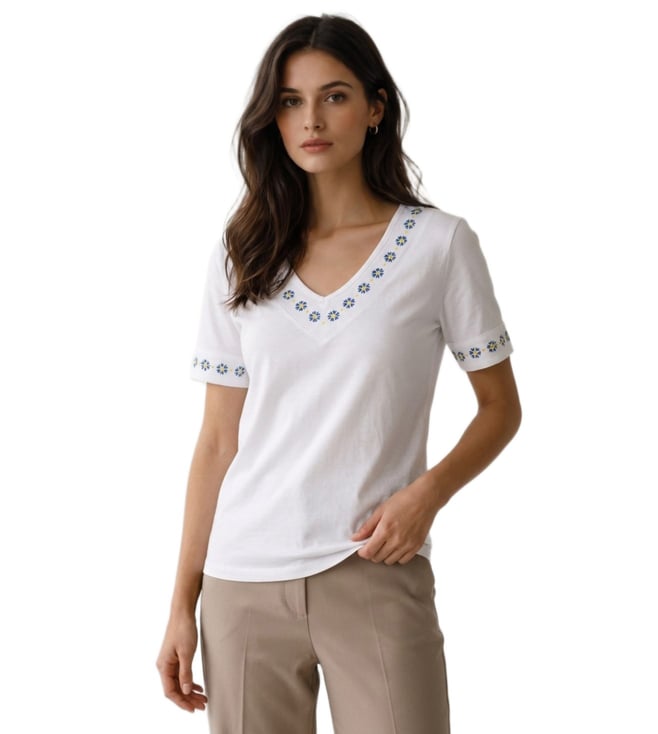 White V-Neck Monile Cotton T-shirt