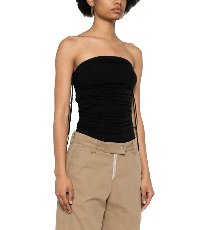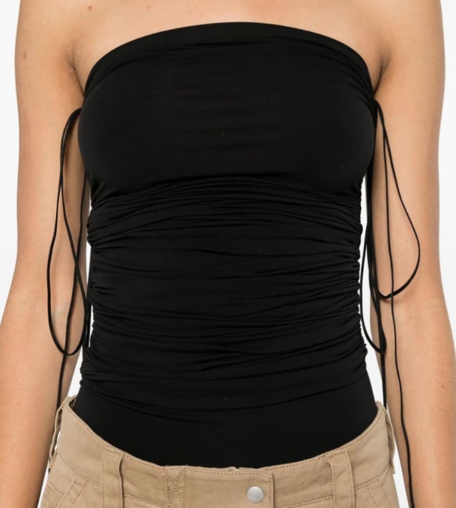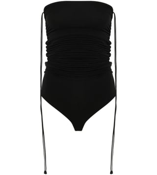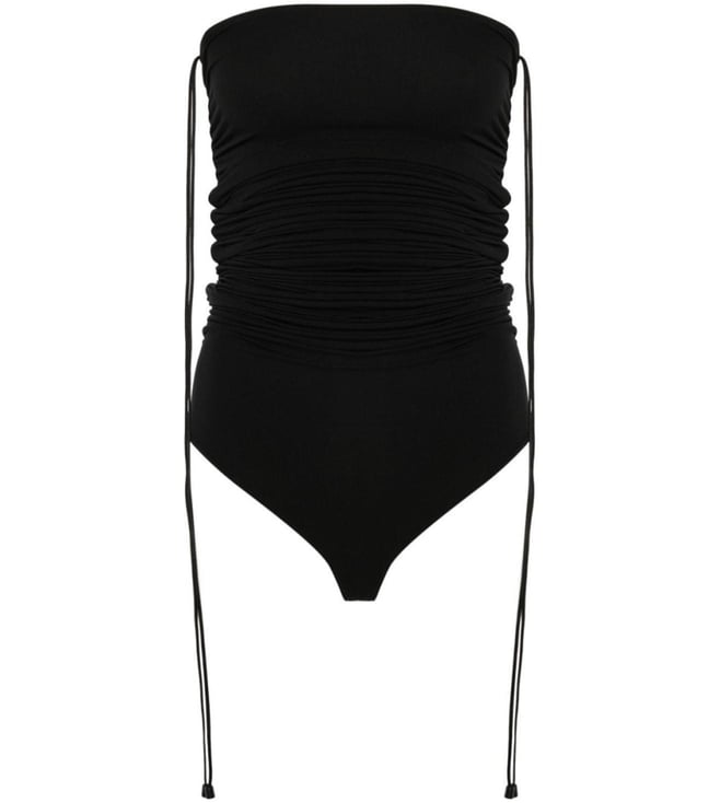 Unleash your inner allure with the Wolford Black Fatal Draping String Bodysuit. This masterpiece in classic black exudes sophistication and mystery, crafted from a luxurious blend of 93% polyamide and 7% spandex for a flawless, regular fit. The seamless design embraces your silhouette, offering a second-skin feel, while the elegant draping adds a touch of drama. Perfect for the modern woman, this bodysuit is a statement of confidence and style, ensuring you captivate with every move.
