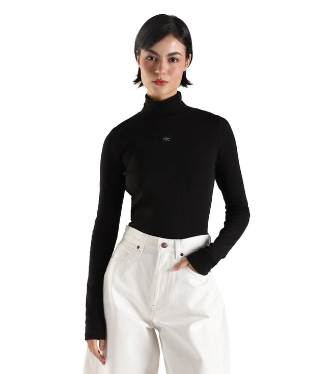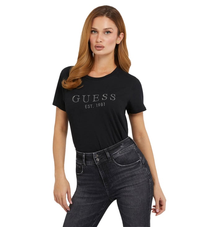 Black Pure Cotton Embellished Round Neck T-Shirt