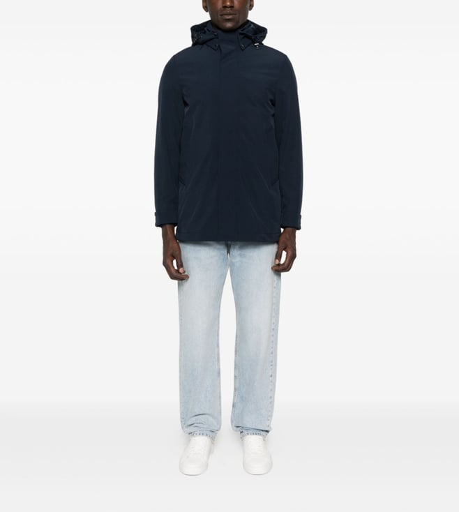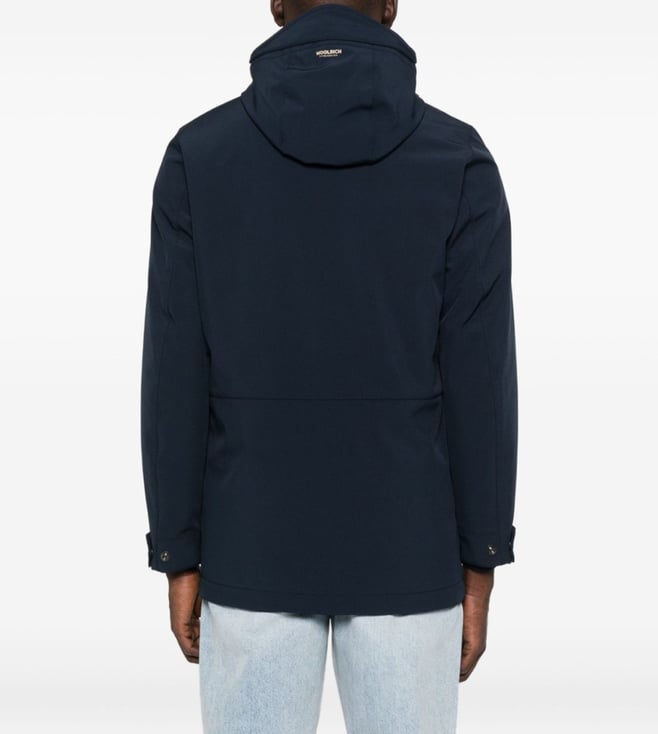 The Woolrich Navy Blue Logo Jacket is a masterpiece of style and functionality, crafted for the modern man. Its deep navy hue exudes sophistication, while the solid pattern offers a timeless appeal. Designed with full sleeves and a practical hood, this jacket ensures warmth and protection against the elements. The blended fabric provides a perfect balance of comfort and durability, making it an ideal choice for any adventure. The iconic Woolrich logo subtly adorns the chest, adding a touch of heritage to this contemporary piece.
