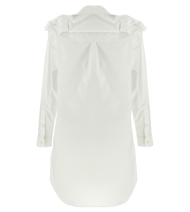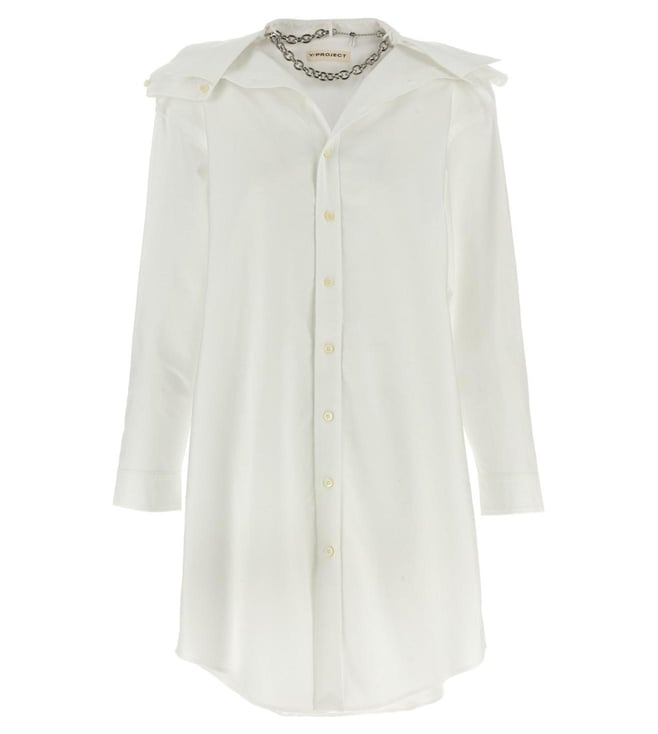 Embrace timeless elegance with this pristine white dress, designed for the modern woman who values both comfort and style. Crafted from 100% cotton, it offers a relaxed fit that drapes effortlessly, ensuring all-day comfort. The solid pattern exudes sophistication, while the long sleeves and classic shirt collar add a touch of refinement. Perfect for any occasion, its subtle closure ensures a seamless silhouette, making it a versatile addition to any wardrobe.