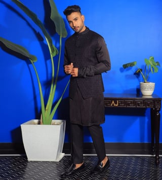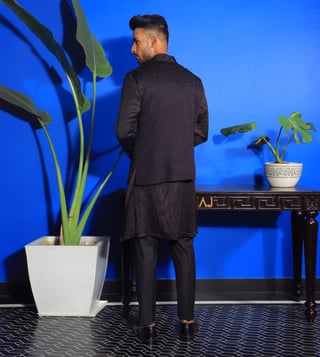 YAJY By Aditya Jain Black Baghban Nishat Bandi Kurta With Trouser And Jacket