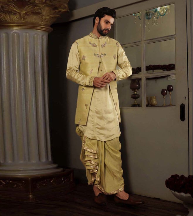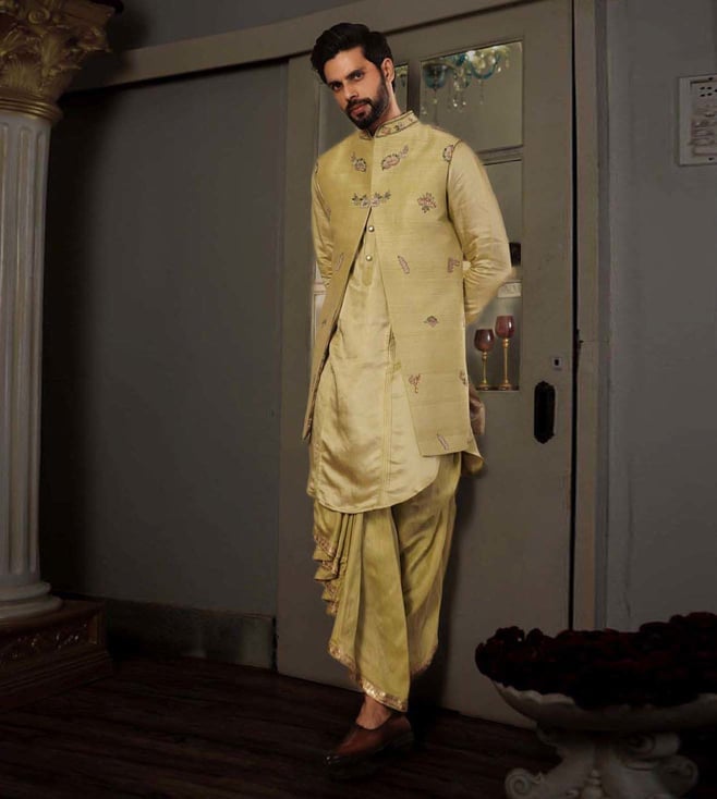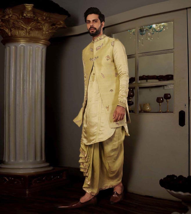YAJY By Aditya Jain Mint Green Rameo Keyshi Jacket with Kurta
