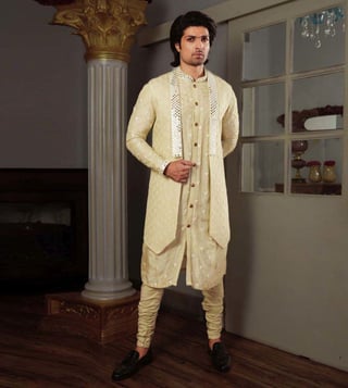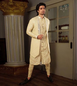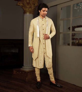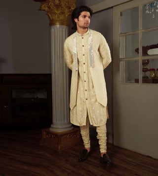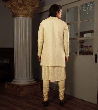 YAJY By Aditya Jain Mint Green Rameo Yuga Jacket with Kurta