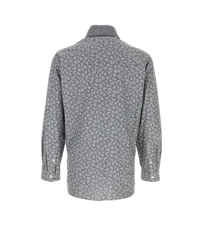 Elevate your style with the YOHJI YAMAMOTO Grey Floral shirt. All-over floral print, front button fastening, classic collar, strap detailing, long sleeves.
