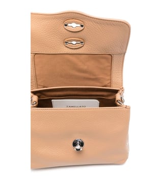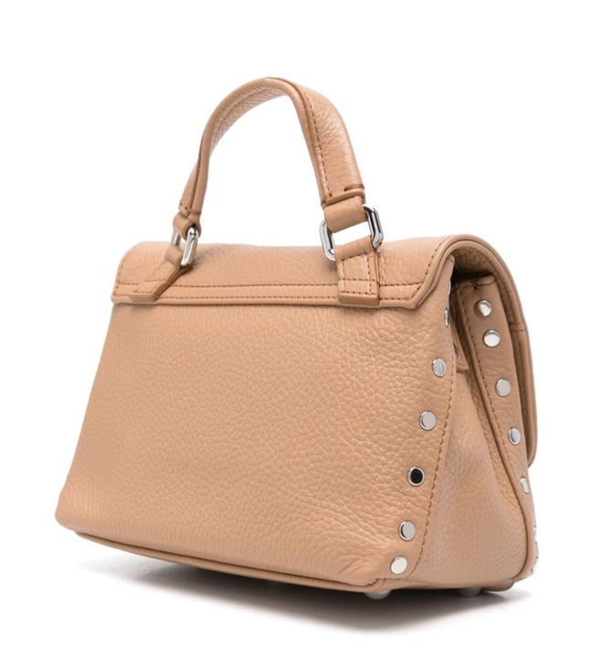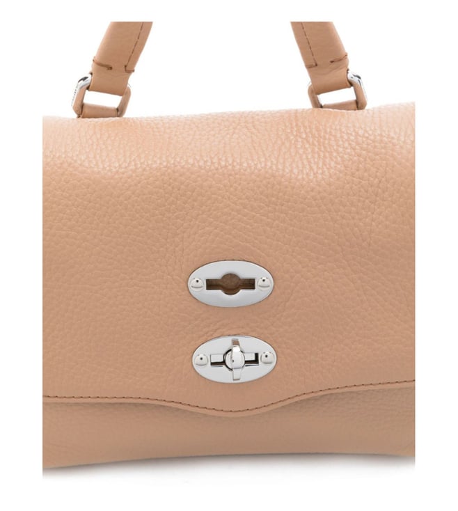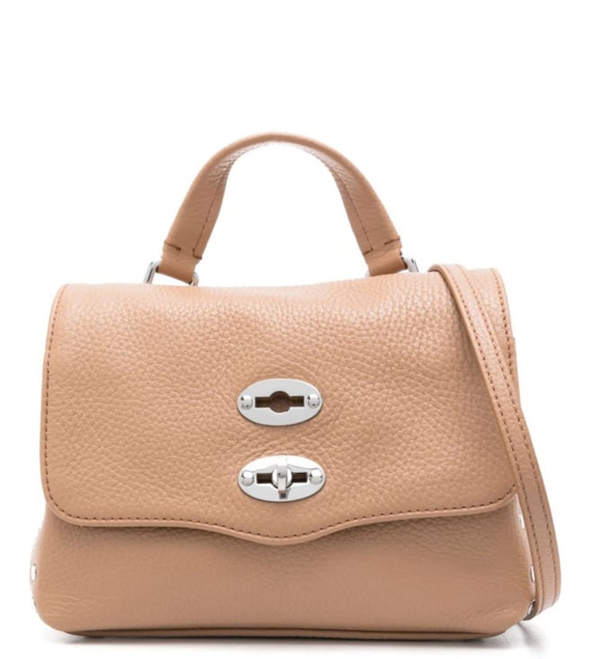 Light brown postina baby satchel, turn lock closure, 2 compartments, inside logo, top handle with crossbody strap. Products purchased from Darveys are supported exclusively by the warranty/exchange policies of Darveys and its partner boutiques. Brand owners and their channel partners are not responsible for exchange/warranty services for items purchased through Darveys.