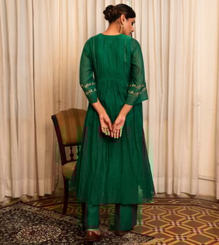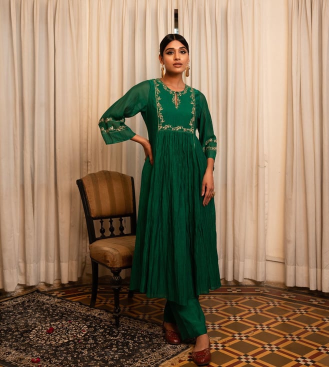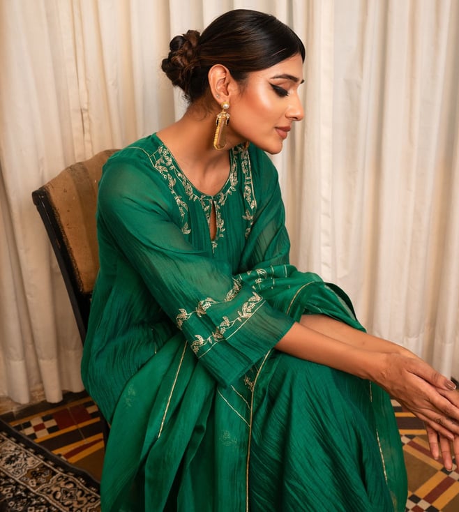Zebein India Green Chanderi Silk Regular Fit Kurta Set