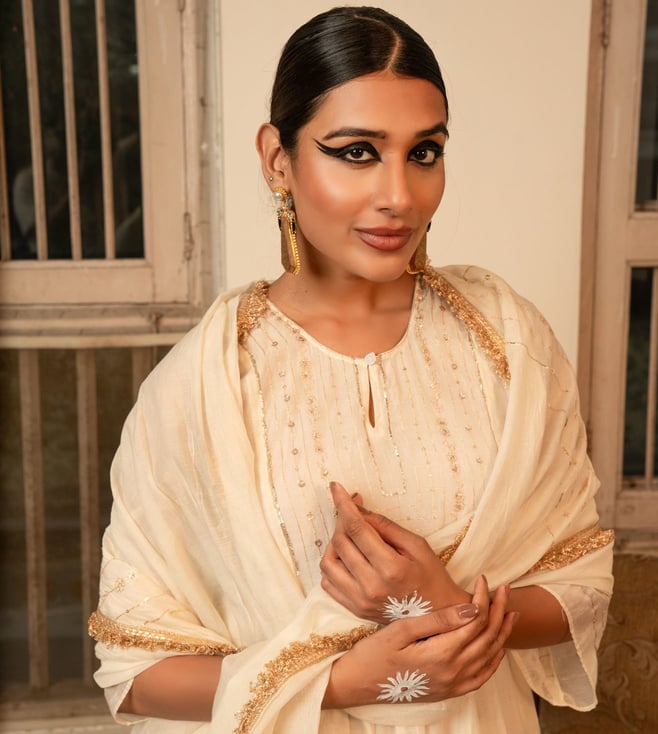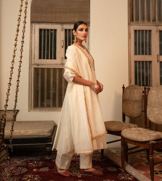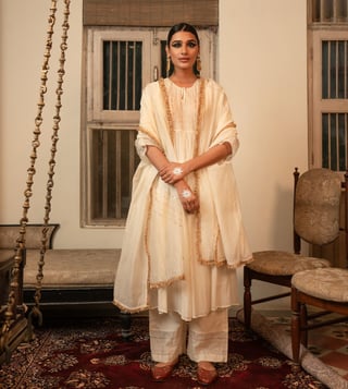 Elevate your casual wardrobe with the Zebein India White Chanderi Silk Kurta Pant Set for women. This regular fit outfit offers elegance and comfort for everyday wear. Disclaimer: All other items in the image are only for display purposes and will not be a part of the delivery content. Product colour may slightly vary due to photographic lighting sources. Country of Origin - India.