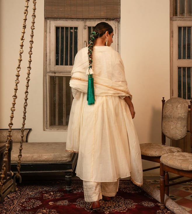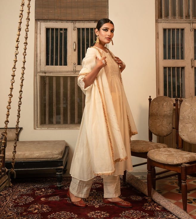 Zebein India White Chanderi Silk Regular Fit Kurta Set