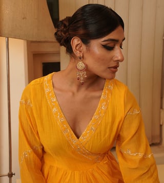 Elevate your casual wardrobe with the Zebein India Yellow Chanderi Silk Anarkali Pant Set, designed for women. This elegant set combines comfort and style, perfect for everyday wear. Disclaimer: All other items in the image are only for display purposes and will not be a part of the delivery content. Product colour may slightly vary due to photographic lighting sources. Country of Origin - India.