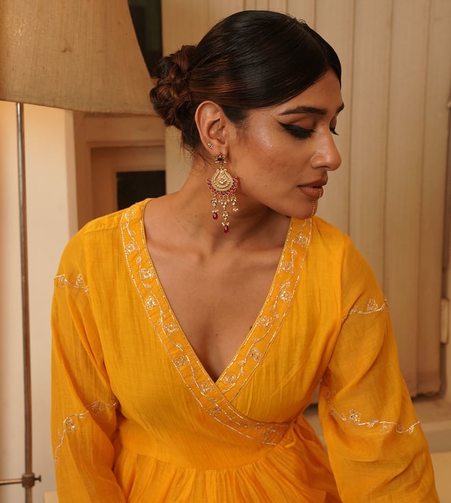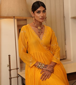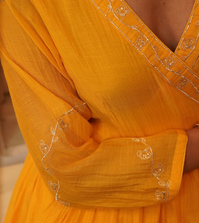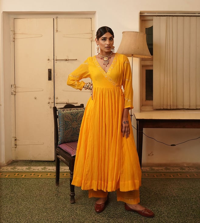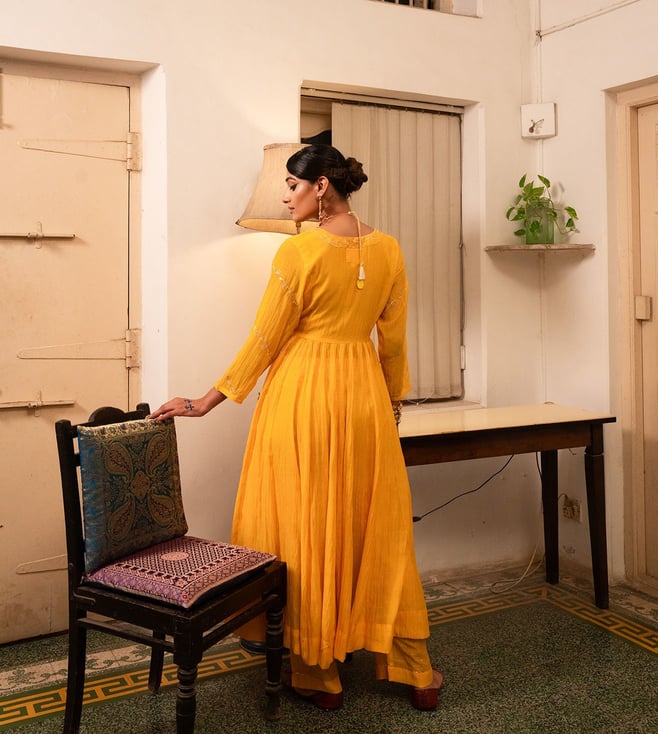 Zebein India Yellow Chanderi Silk Regular Fit Anarkali Set