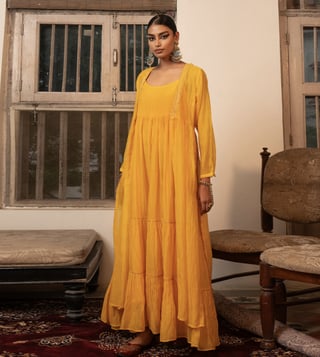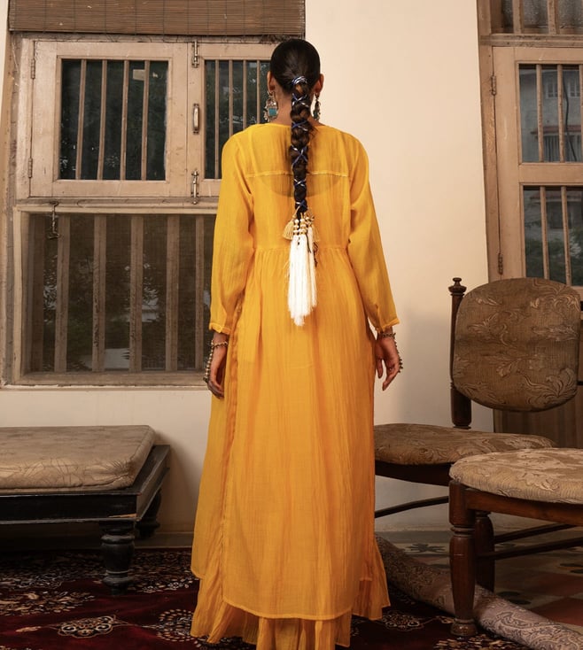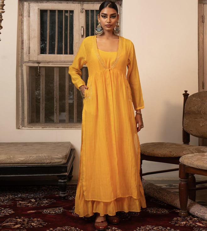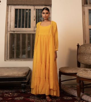 Yellow Chanderi Silk Regular Fit Shrug