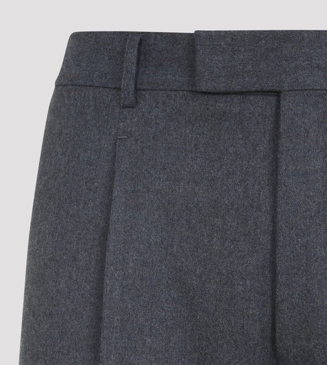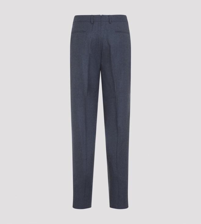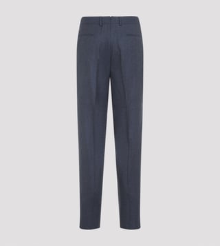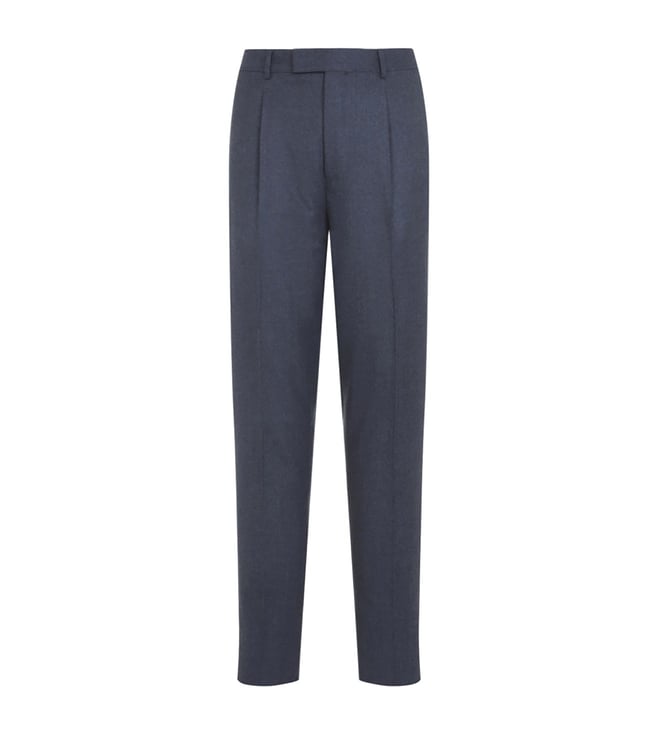 Zegna Blue Straight Fit Pleated Wool Trousers