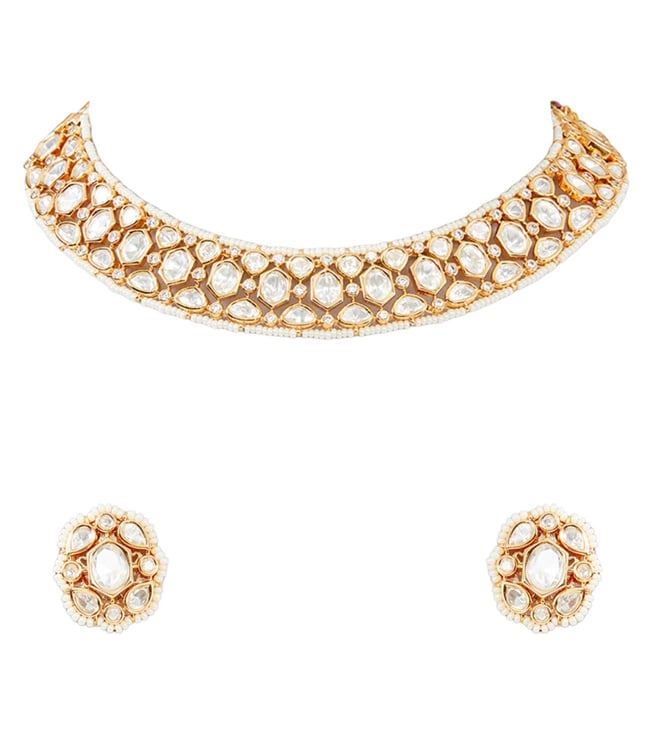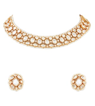 Primp your ensemble with this gold-plated set. It is studded with kundan stones. It is paired with a matching pair of studs. It is crafted with care using mix metal. Disclaimer: Product colour may slightly vary due to photographic lighting sources. Country of Origin - India.