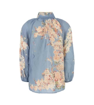 The Zimmermann Light Blue Cascadian Billow Blouse is a dreamy fusion of elegance and comfort, crafted from 100% ramie fabric. Its regular fit gracefully drapes the silhouette, while the delicate light blue hue evokes serene skies. The blouse features a subtle pattern that adds a touch of sophistication, perfect for any occasion. Designed for women, its closure ensures a seamless finish, making it a versatile addition to any wardrobe, effortlessly blending timeless style with modern flair.