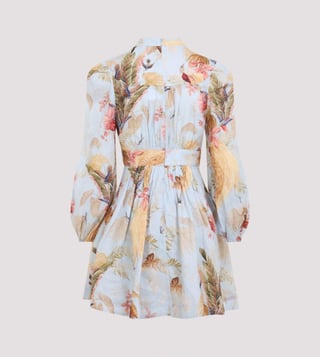 Embrace the essence of spring with this enchanting light blue dress, a harmonious blend of elegance and comfort. Crafted from 100% linen, its breathable fabric drapes effortlessly, offering a regular fit that flatters every silhouette. The delicate floral pattern dances across the fabric, adding a touch of whimsy, while the long sleeves and V-neckline exude timeless sophistication. A subtle closure ensures a seamless finish, making it the perfect choice for any occasion where grace meets style.