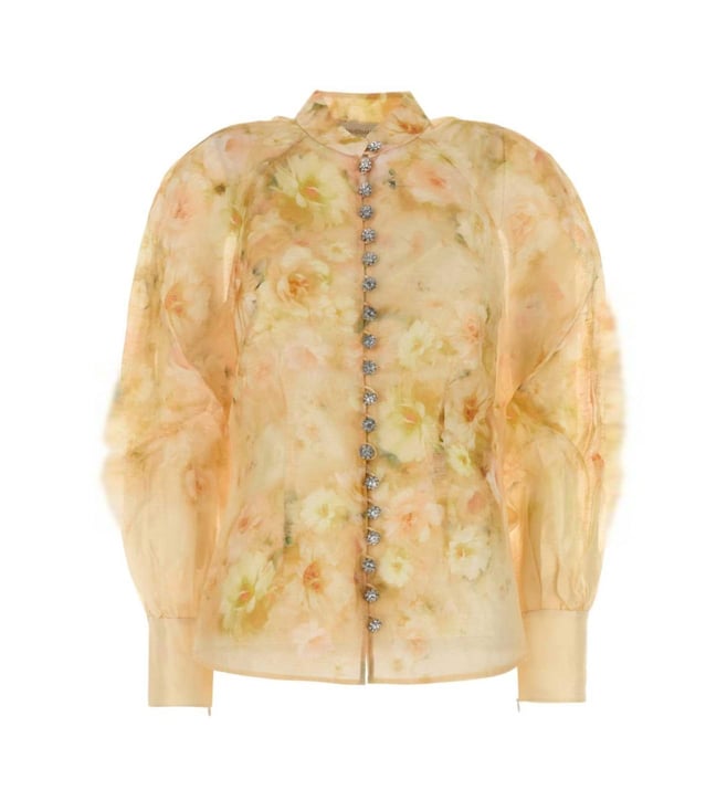 Embrace effortless elegance with our light yellow floral casual shirt, designed for the modern woman. Crafted from a luxurious blend of 55% linen and 45% silk, this shirt offers a soft, breathable feel perfect for any season. The delicate floral pattern adds a touch of whimsy, while the long sleeves and band collar provide a sophisticated silhouette. A subtle closure ensures a seamless finish, making it an ideal choice for both casual outings and chic gatherings. Elevate your wardrobe with this timeless piece.