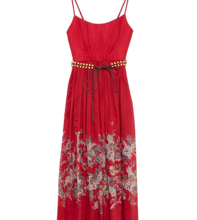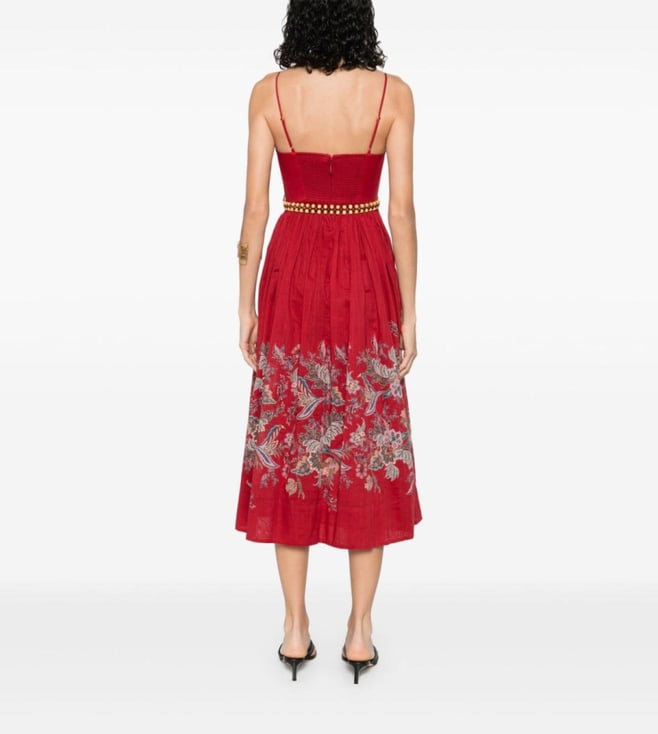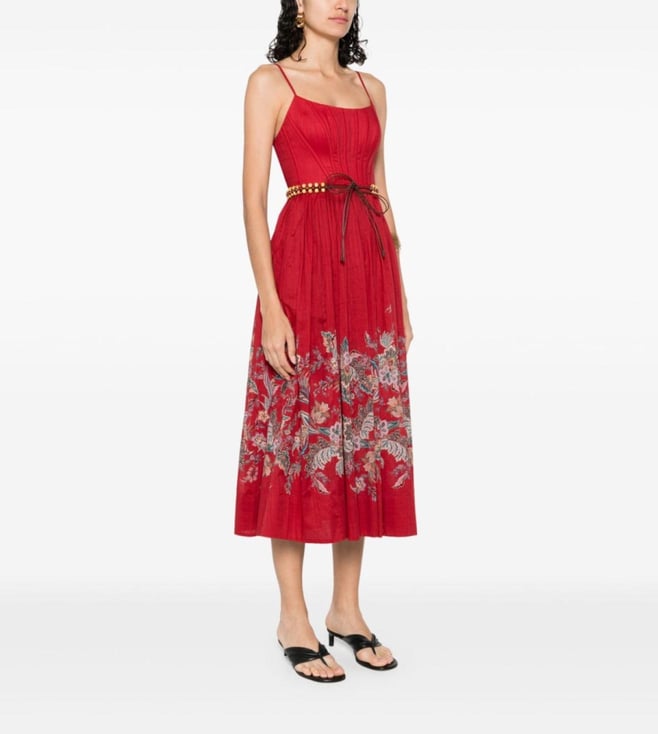 Embrace the essence of summer with this enchanting red floral dress, a masterpiece of vibrant blooms dancing across a rich crimson canvas. Crafted from 100% cotton, it promises breathability and comfort, perfect for sunlit adventures. The sleeveless design and square neckline exude timeless elegance, while the tailored fit flatters every silhouette. A discreet closure ensures a seamless finish, making it an effortless choice for both casual outings and romantic evenings. Unleash your inner goddess in this captivating creation.