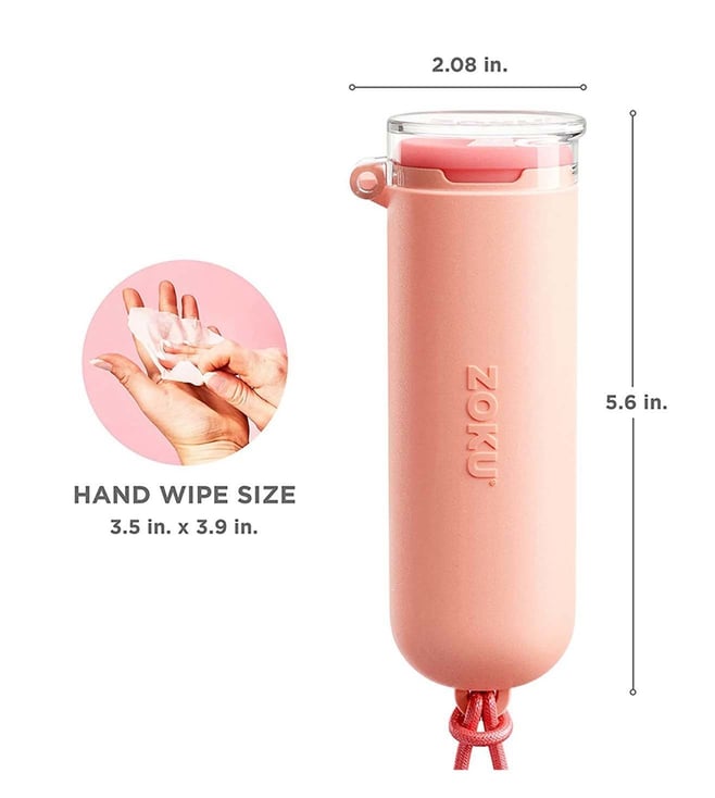 The Peach Travel Hand Wipe Set is thoughtfully designed to help you fight germs wherever you¿re headed. The silicone dispenser stores 25 eco-friendly, 100% biodegradable hand wipes, and easily attaches to your bag, backpack or purse. The perfect solution for keeping your family safe and sanitized. Pack them in your kid¿s school lunch, leave a set at work for wiping down common areas, and be sure to keep a dispenser in your pocket, too, for when you¿re traveling or eating on-the-go.