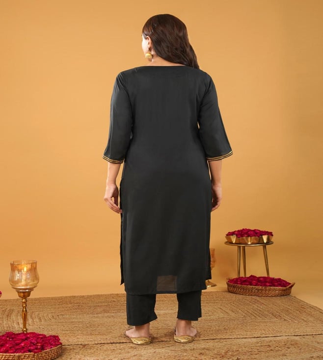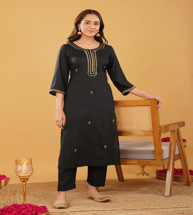 Zuri Black Silk Regular Fit Embroidered Kurta Set