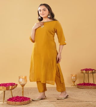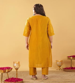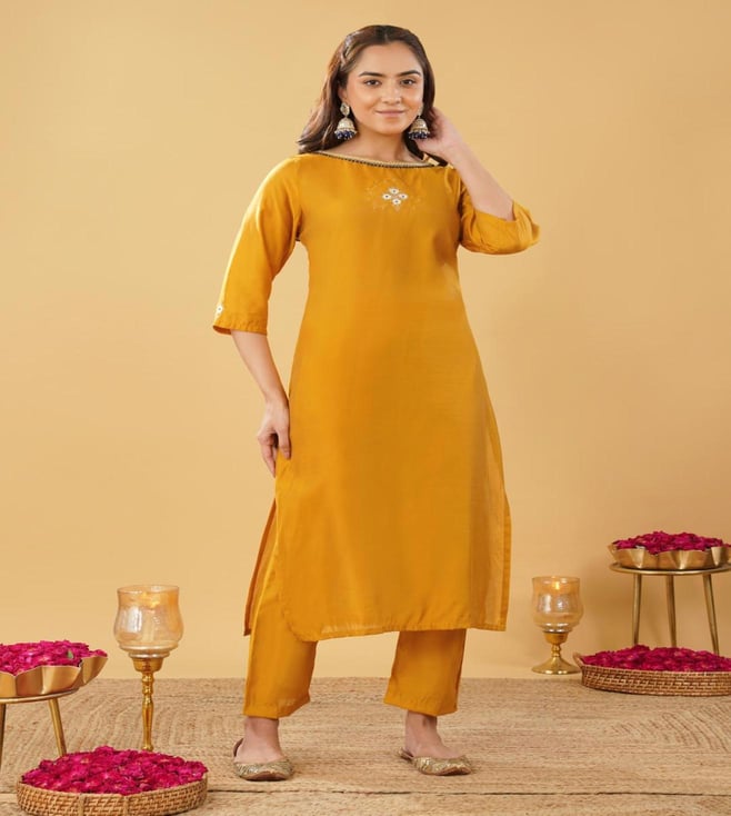 Zuri Mustard Silk Regular Fit Embroidered Kurta Set