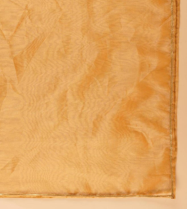Mustard silk blend kurta with beautiful hand embroidery ethnic motif on the body along with beautiful lace work on th neck is perfect for this festive season. Pair it with matching pant and Organza lace dupatta along with matching earrings to close the look.