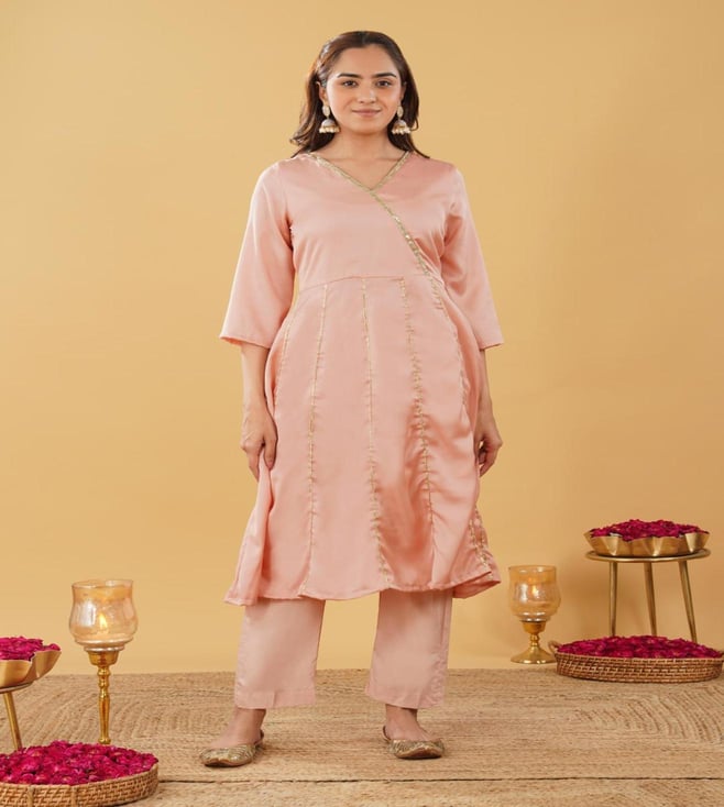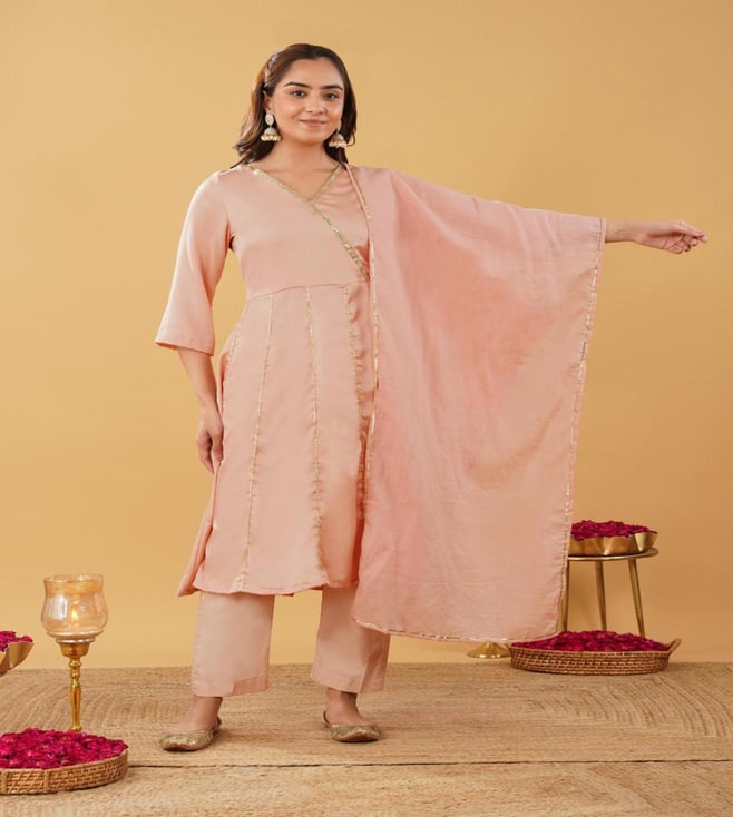Zuri Peach Regular Fit Embroidered Suit Set