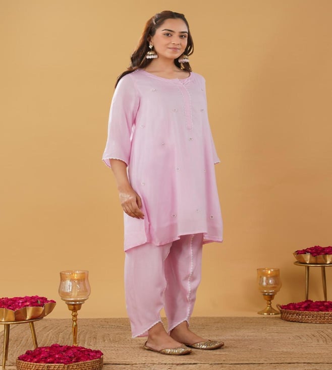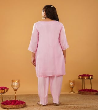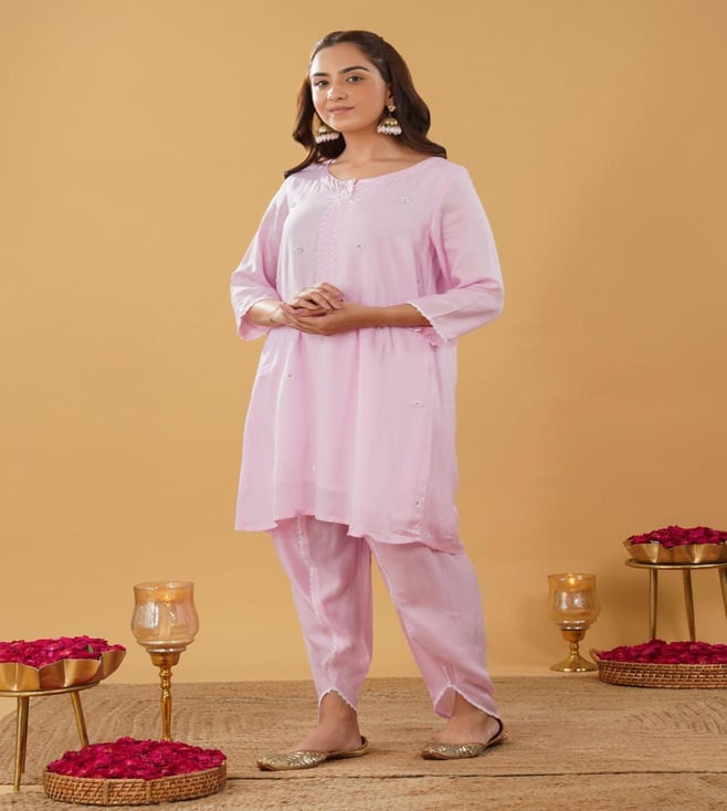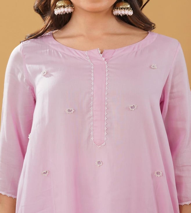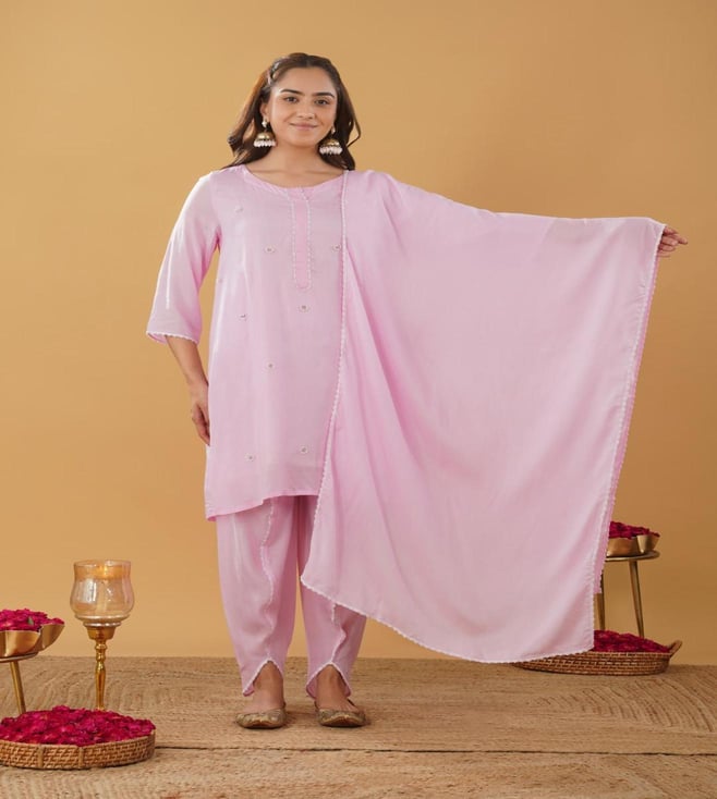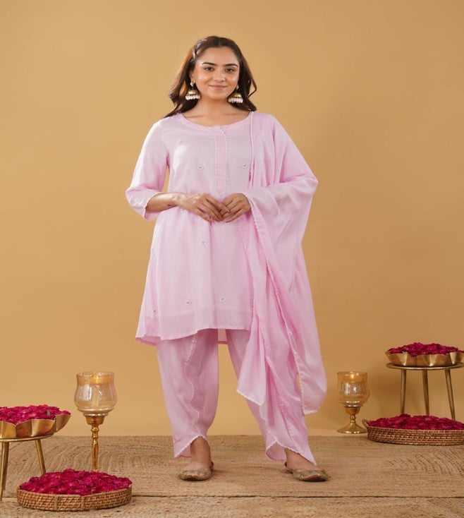Zuri Pink Modal Regular Fit Embroidered Suit Set