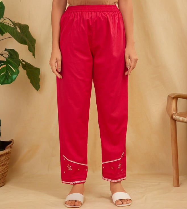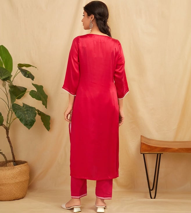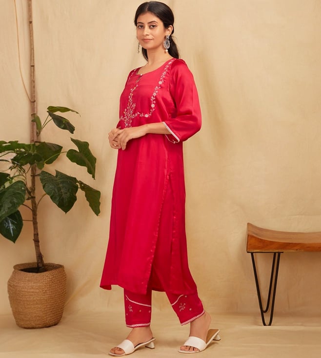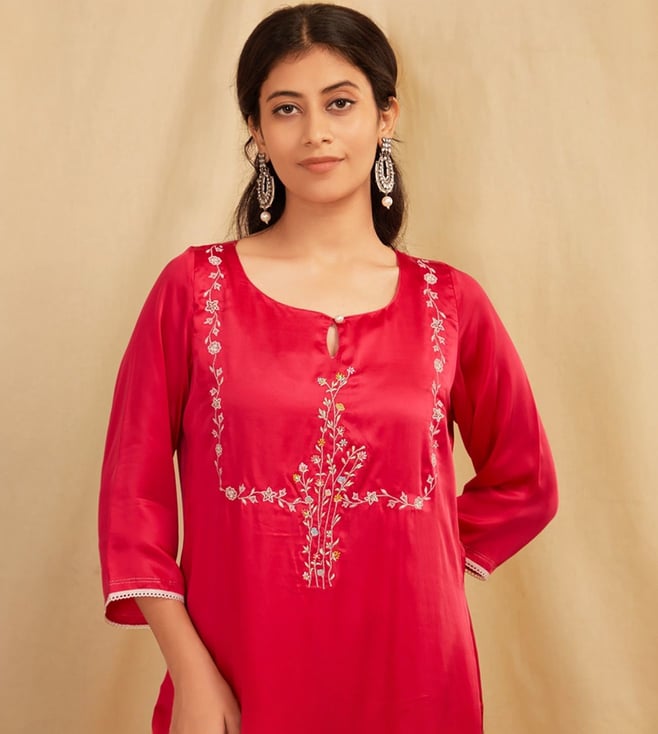 Pink Zareen Embroidered Satin Silk Kurta With Pants