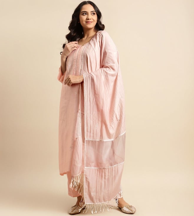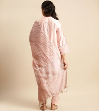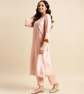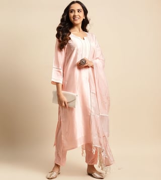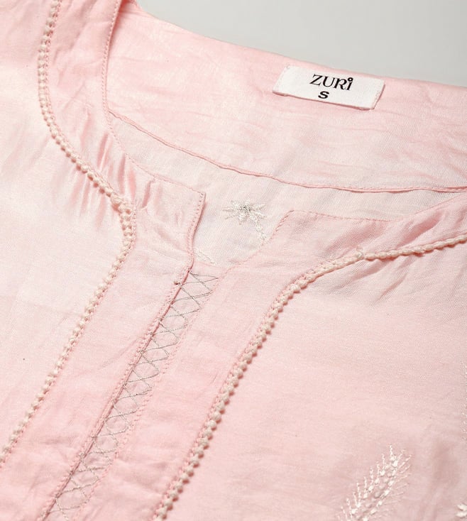 Zuri Pink Zareen Pure Chanderi Color Silk Kurta Zari Embroidered Paired With Matching Pant